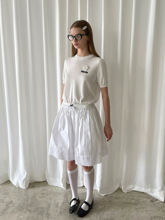 PFF GIRL. Original Design White Flower Tencel Knit T-Shirt