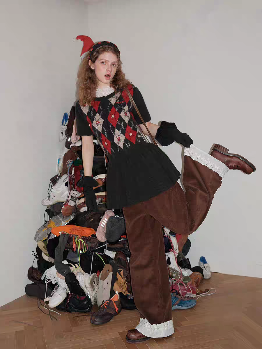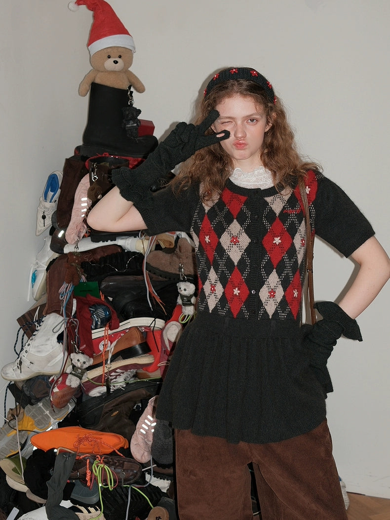 Moromoro. Original Design Diamond Pattern Hand-Embroidered Knit Dress