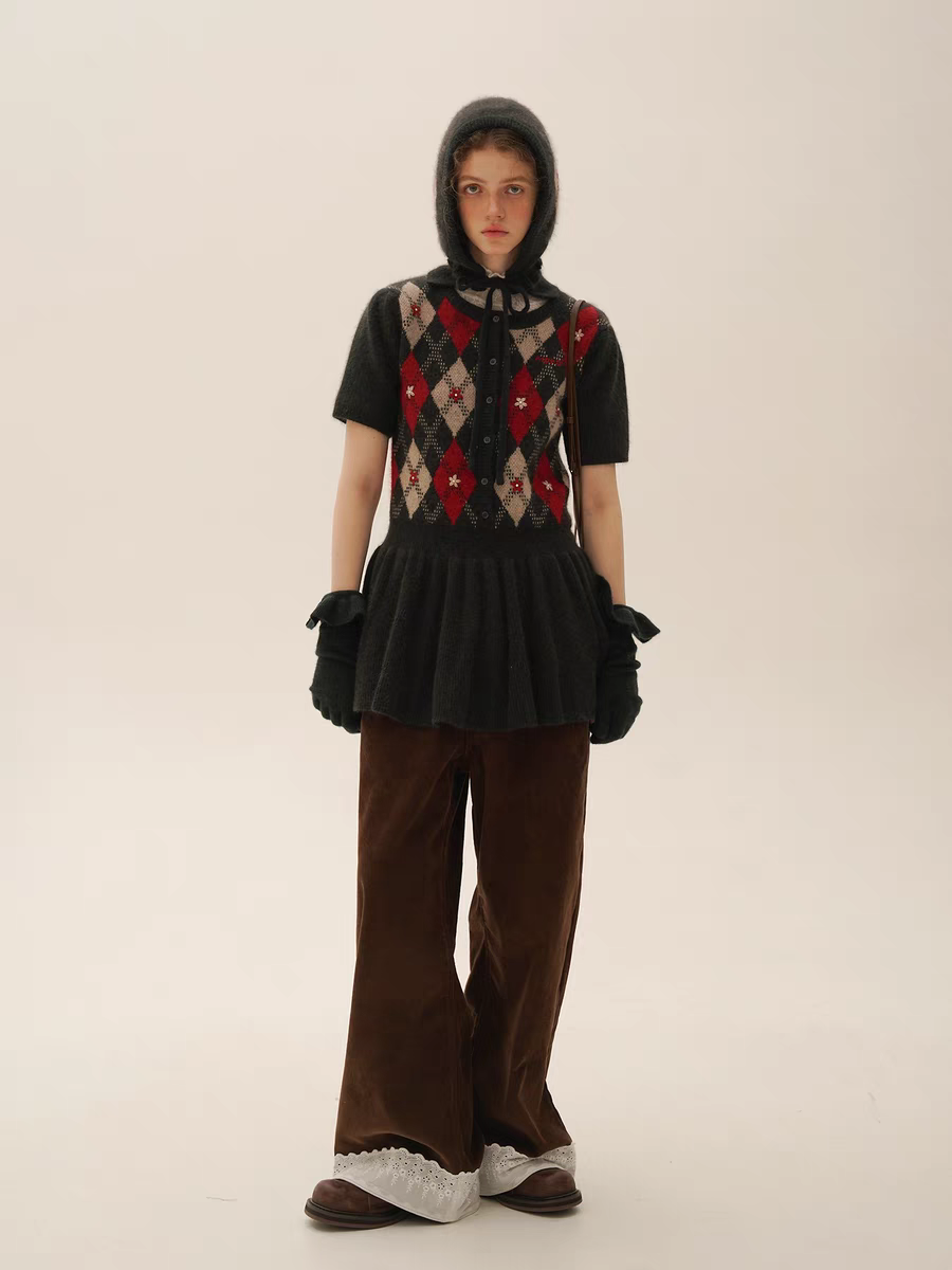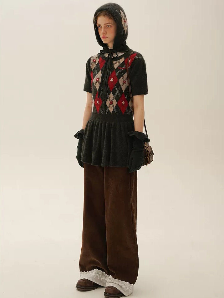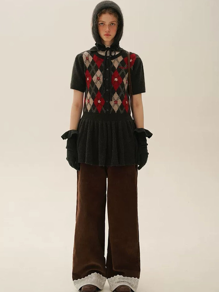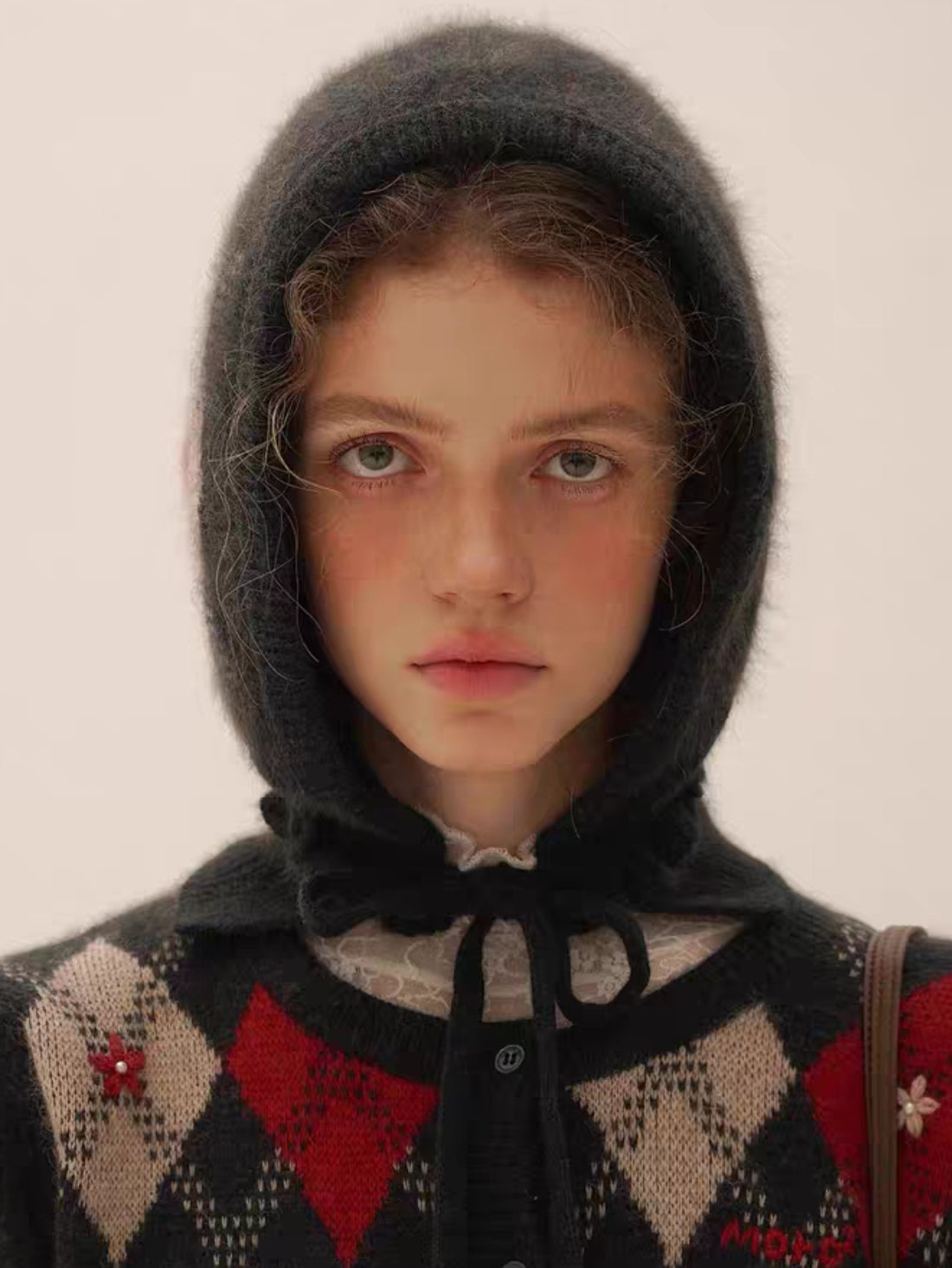 Moromoro. Original Design Diamond Stitch Hand-Embroidered Tie-Up Hat