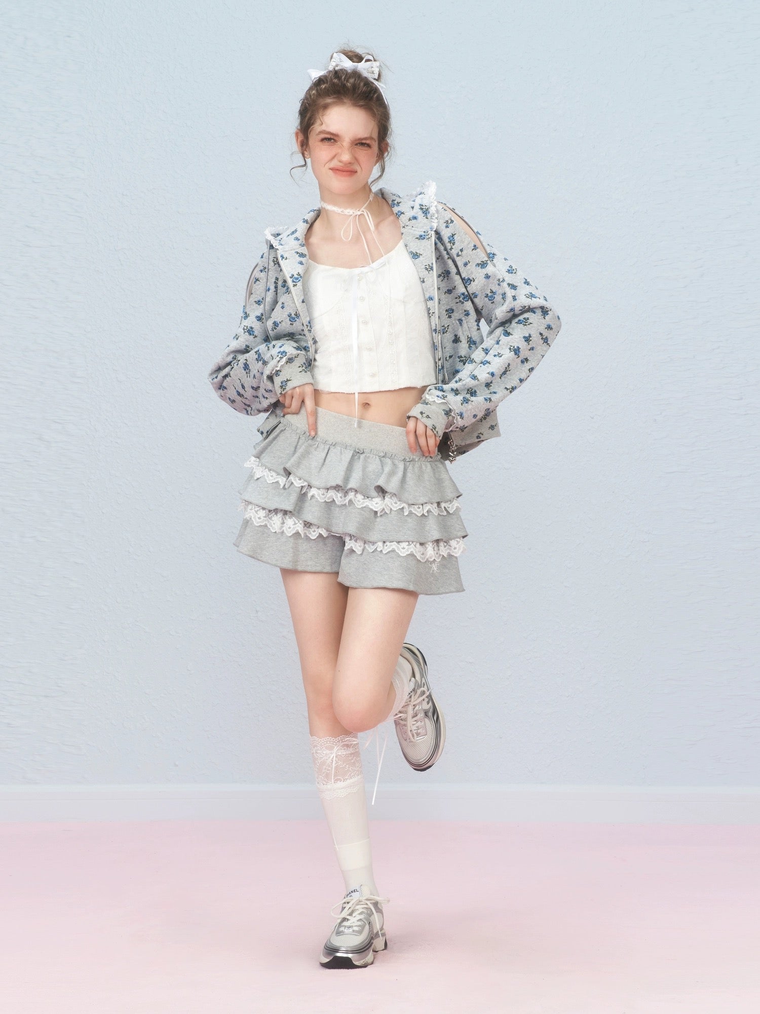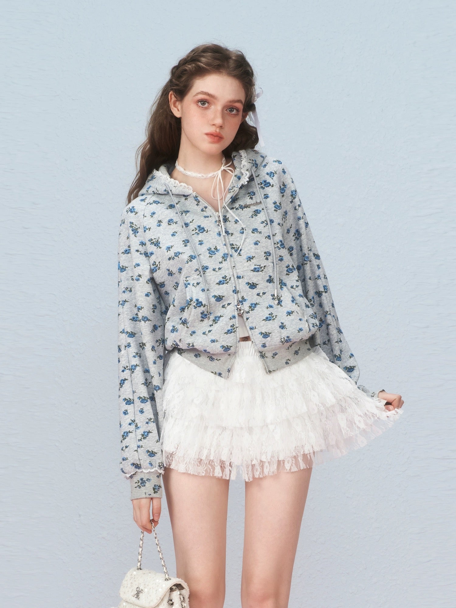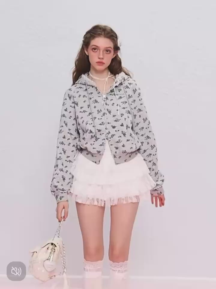 AYF. Original Design Floral Off-shoulder Hoodie