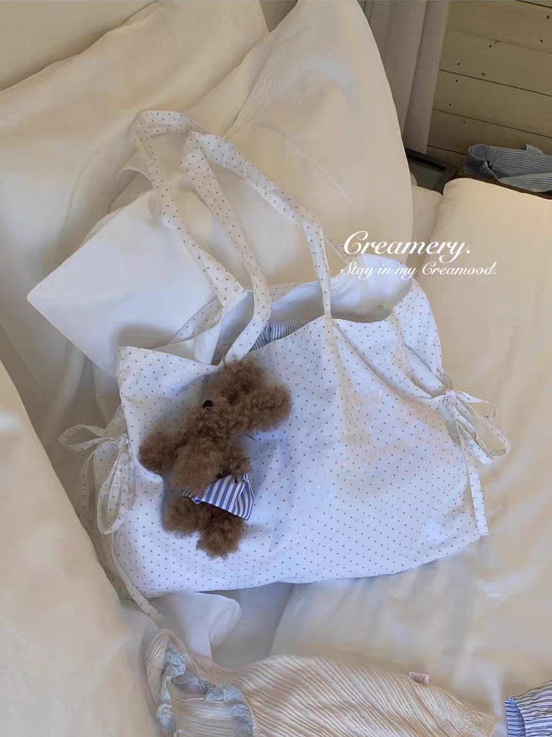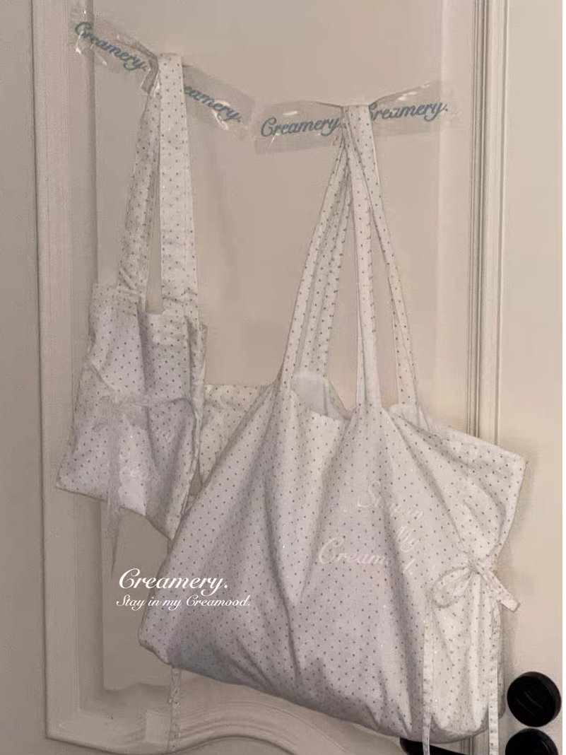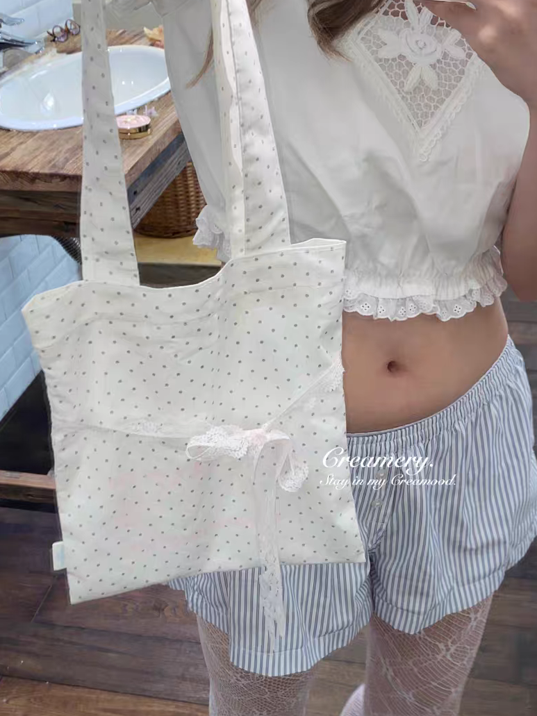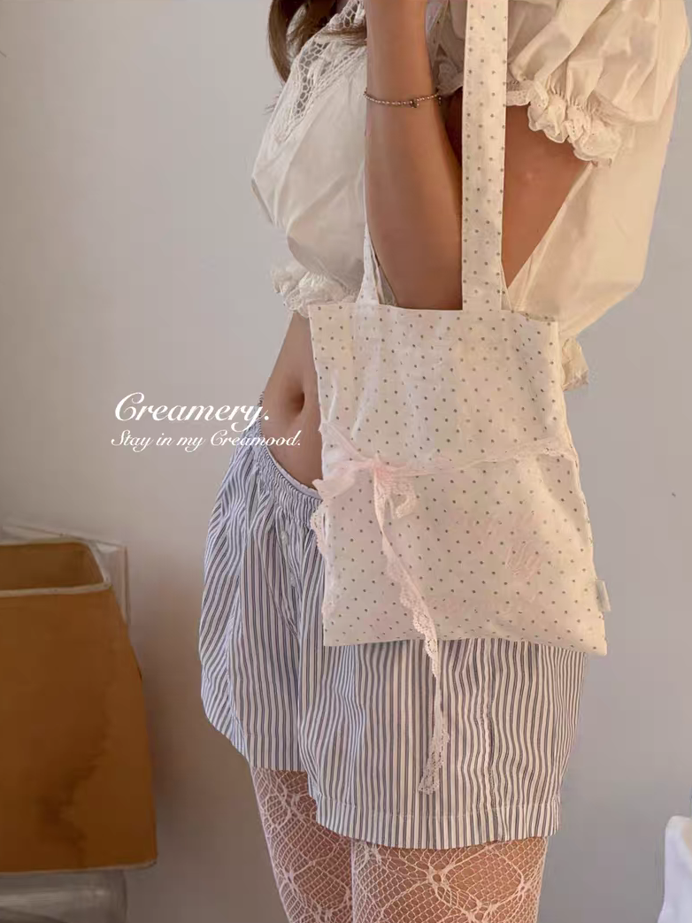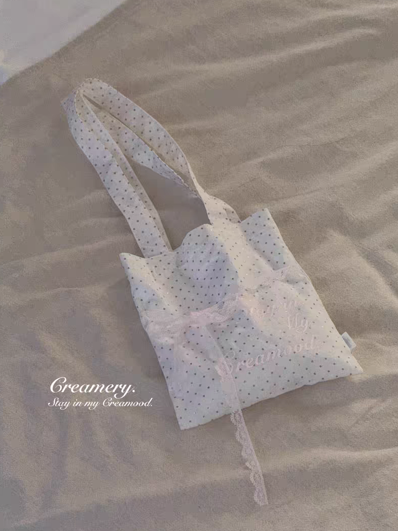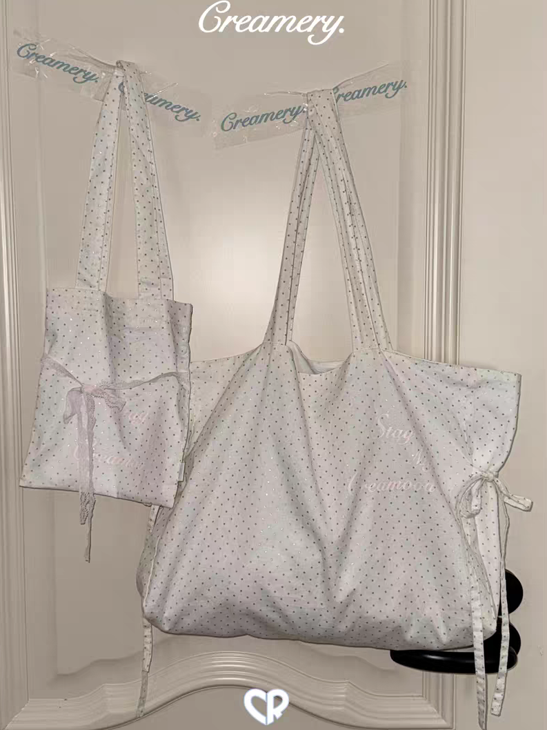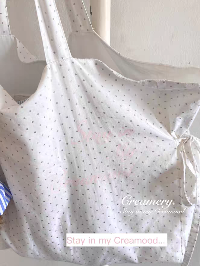 Creamery. Original Design Reversible Polka Dot Bow Tie Canvas Tote Bag