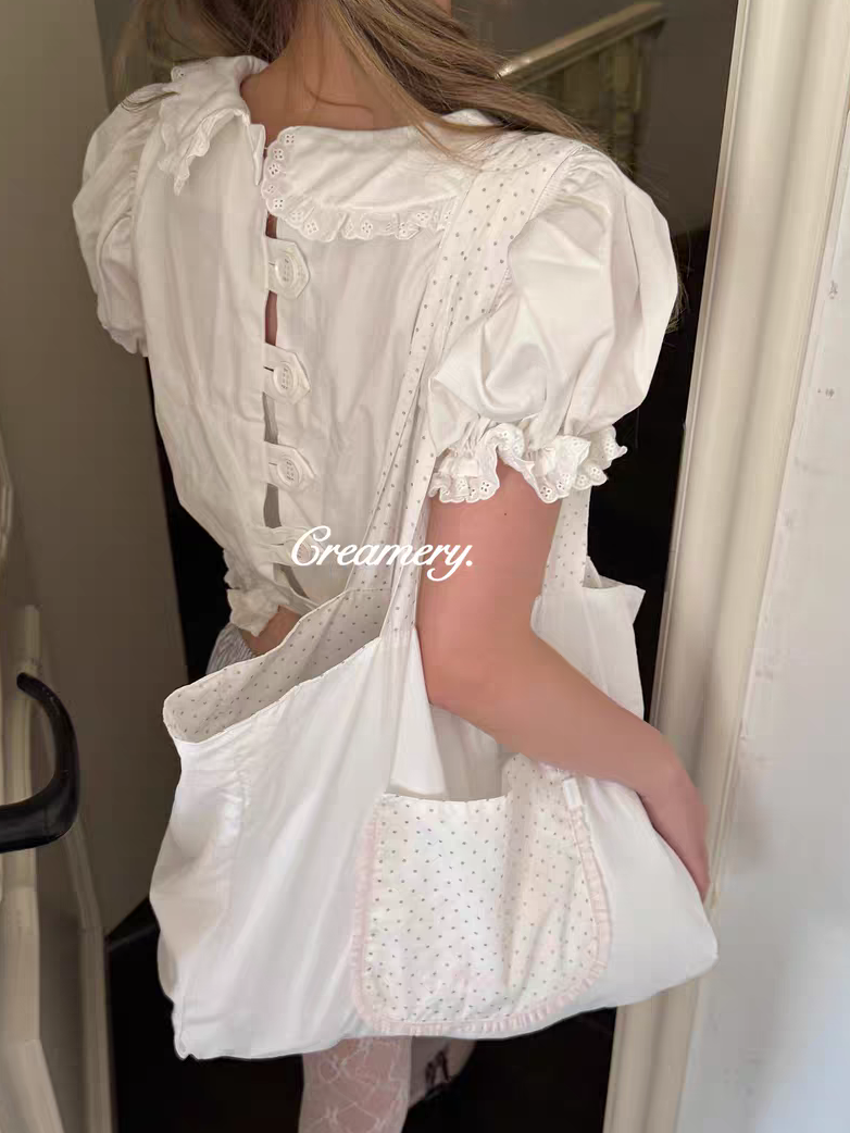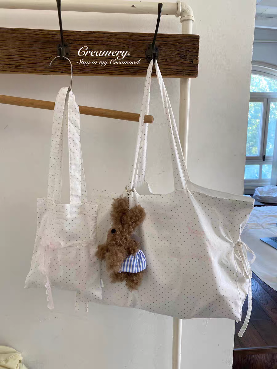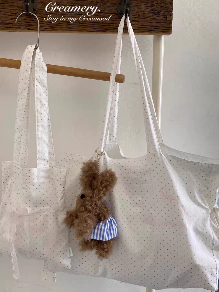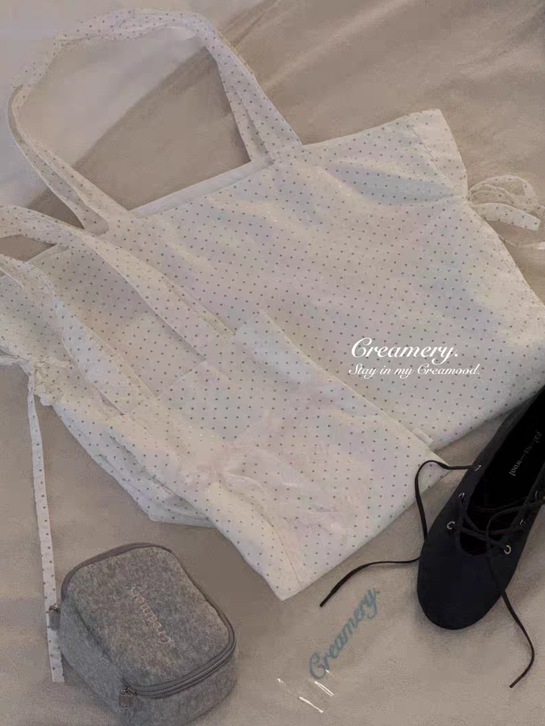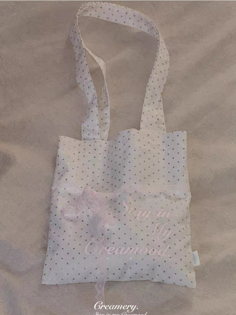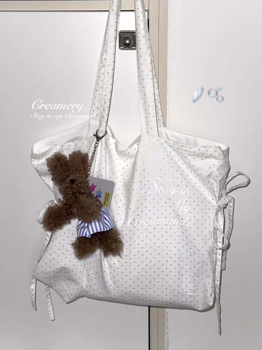 Creamery. Original Design Reversible Polka Dot Bow Tie Canvas Tote Bag