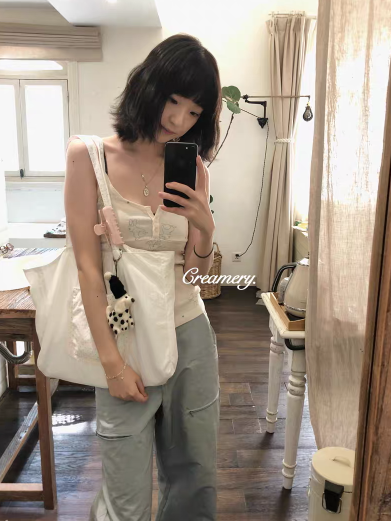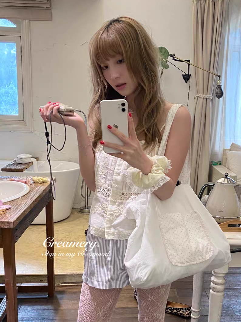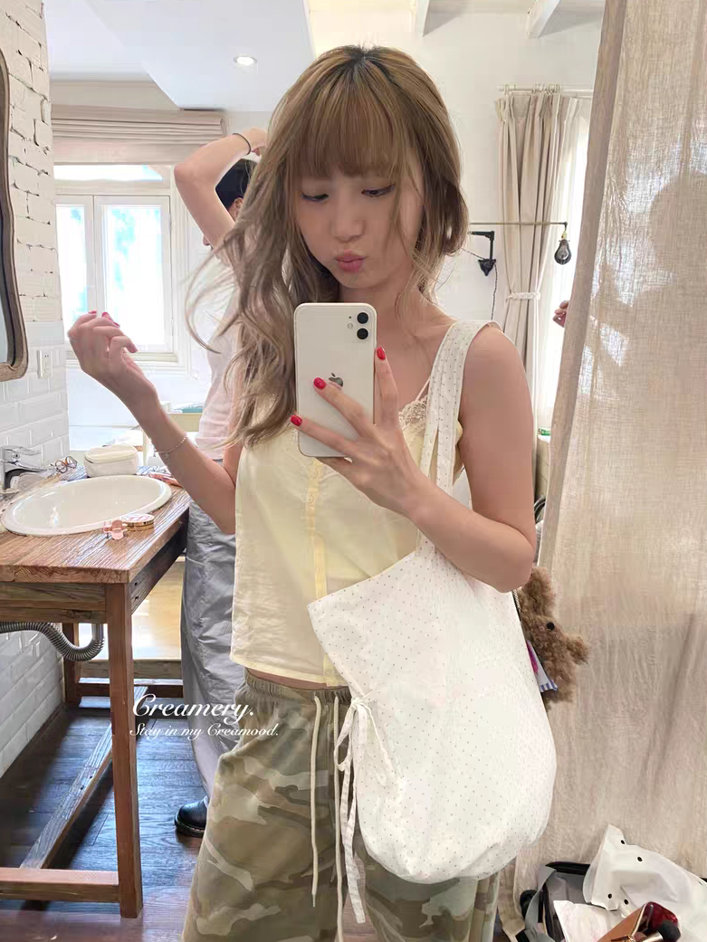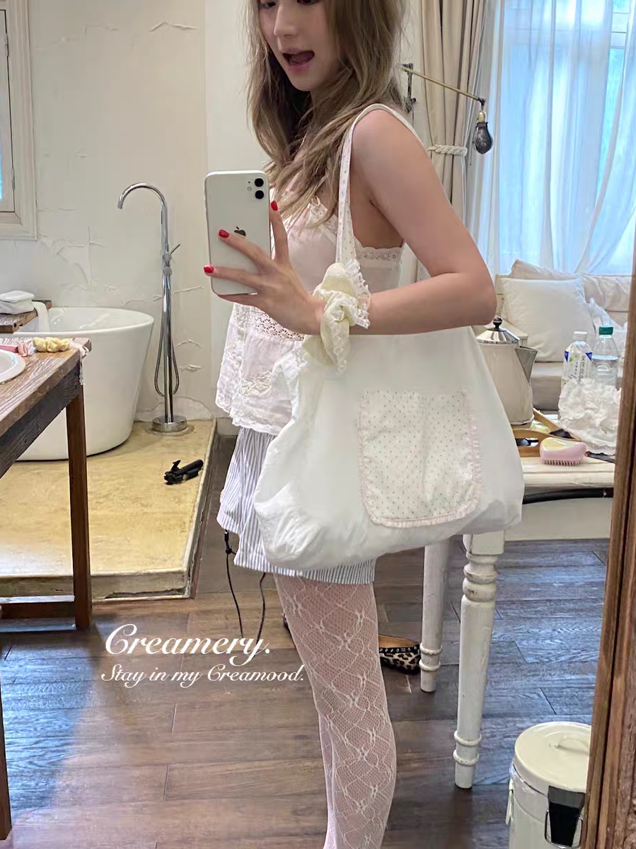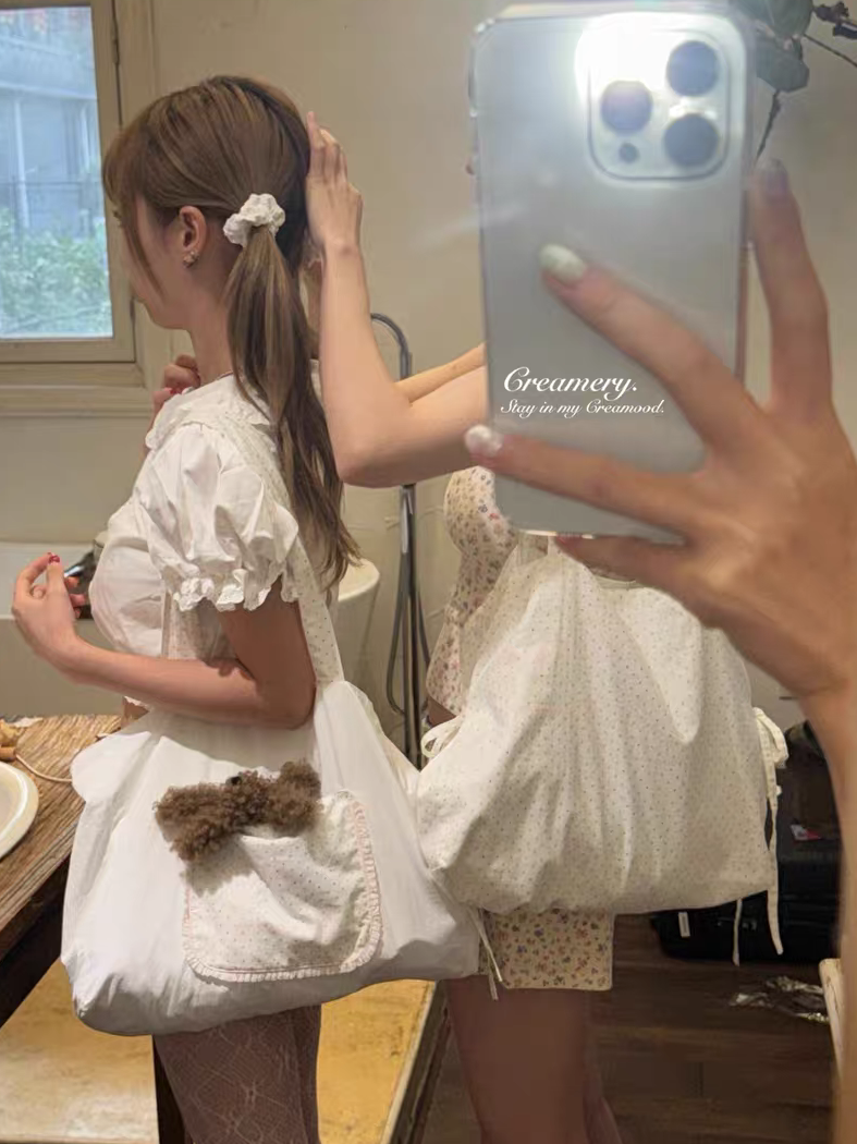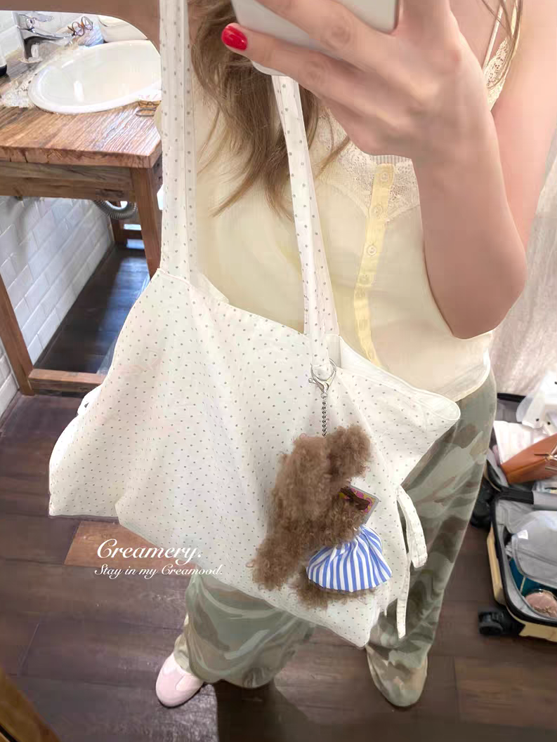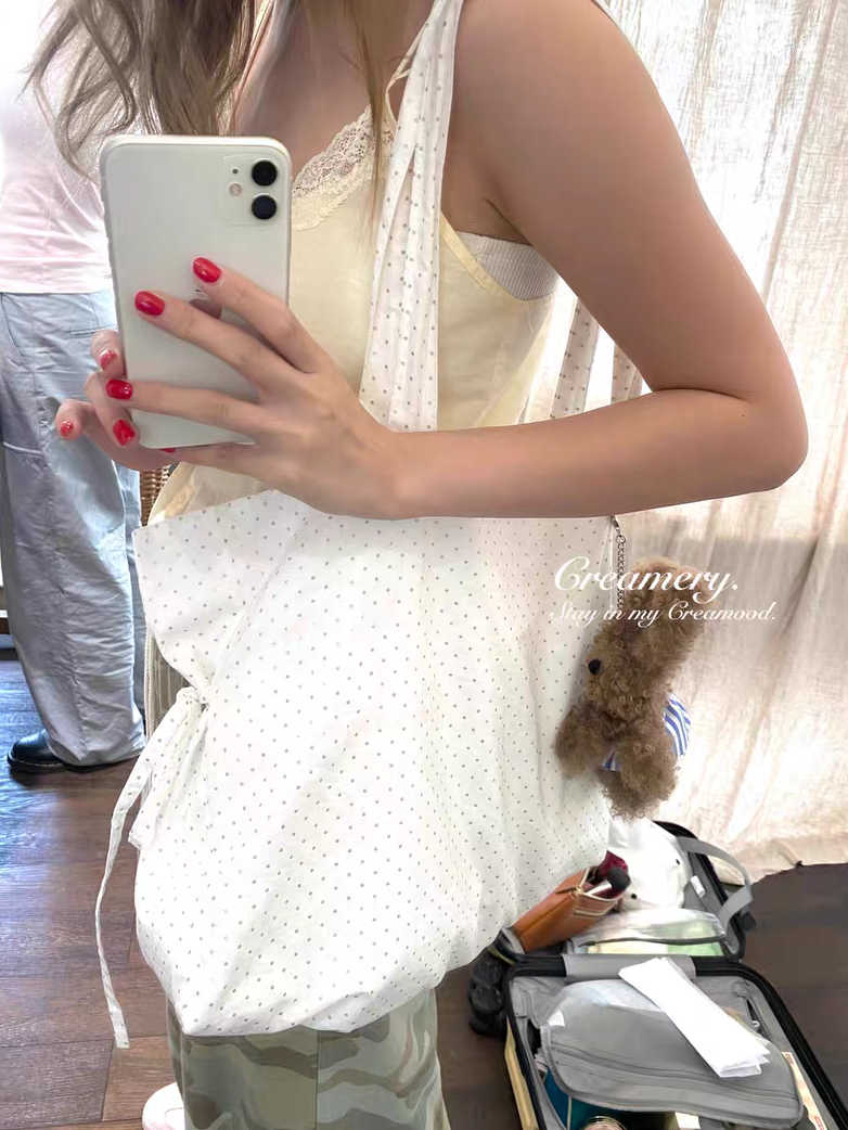 Creamery. Original Design Reversible Polka Dot Bow Tie Canvas Tote Bag