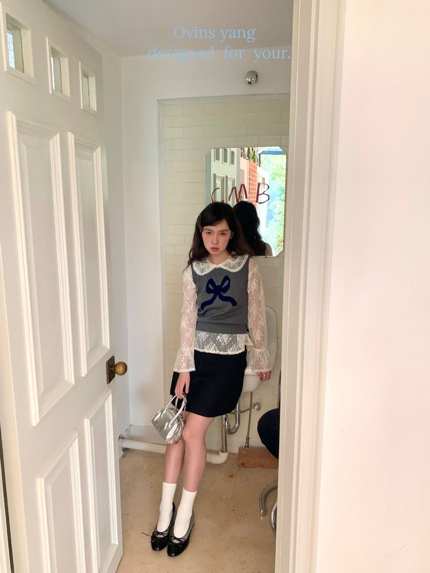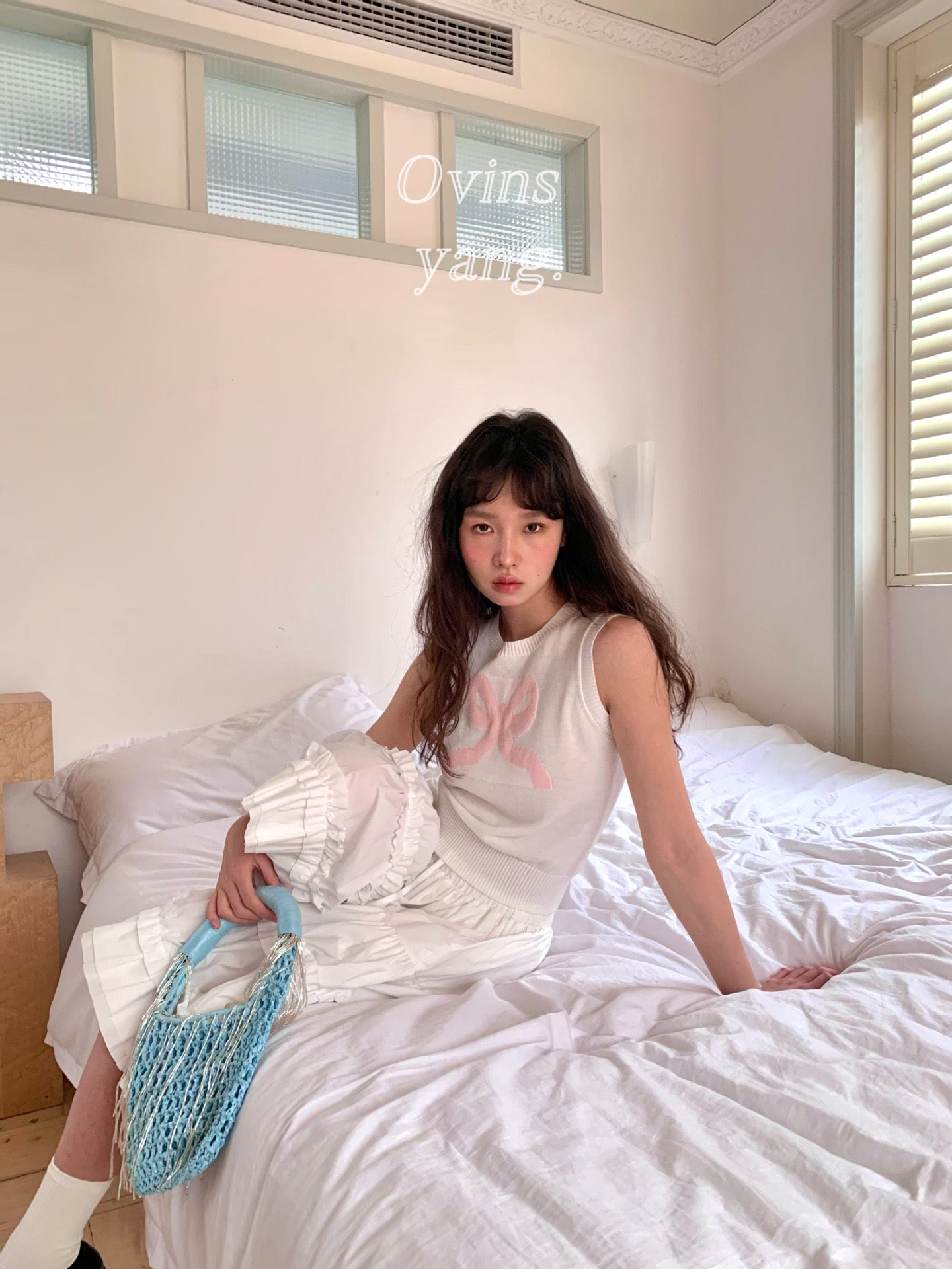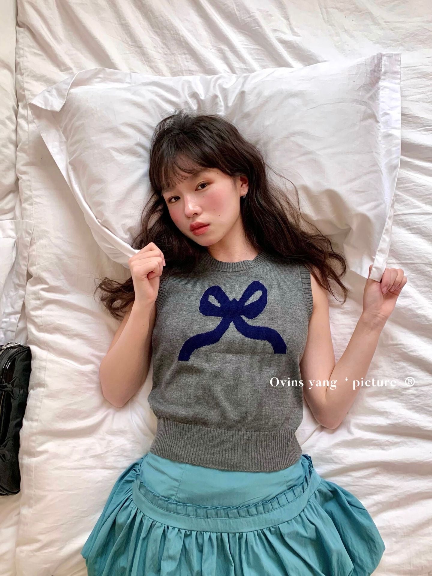 Ovins yang. Girly Sweet Bow knit Vest Sleeveless Top