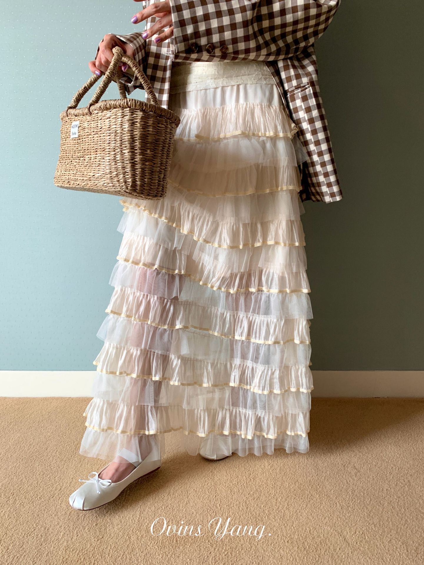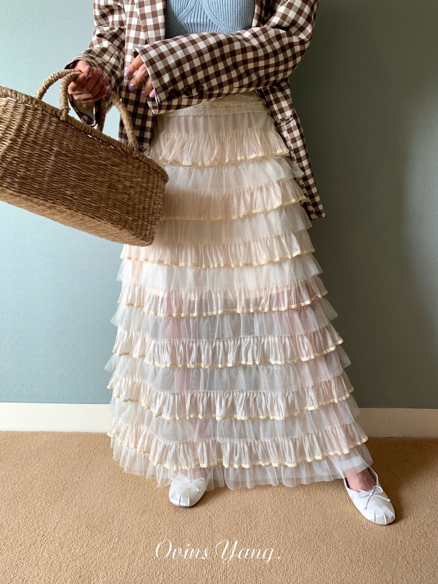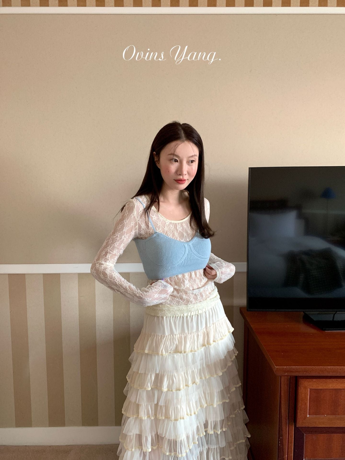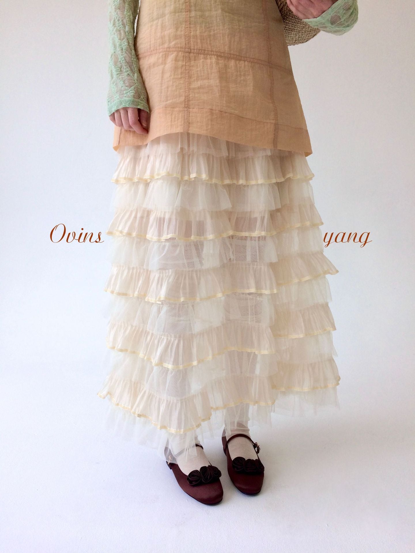 Ovinsyang. Original Design Tiered Lace Midi Skirt