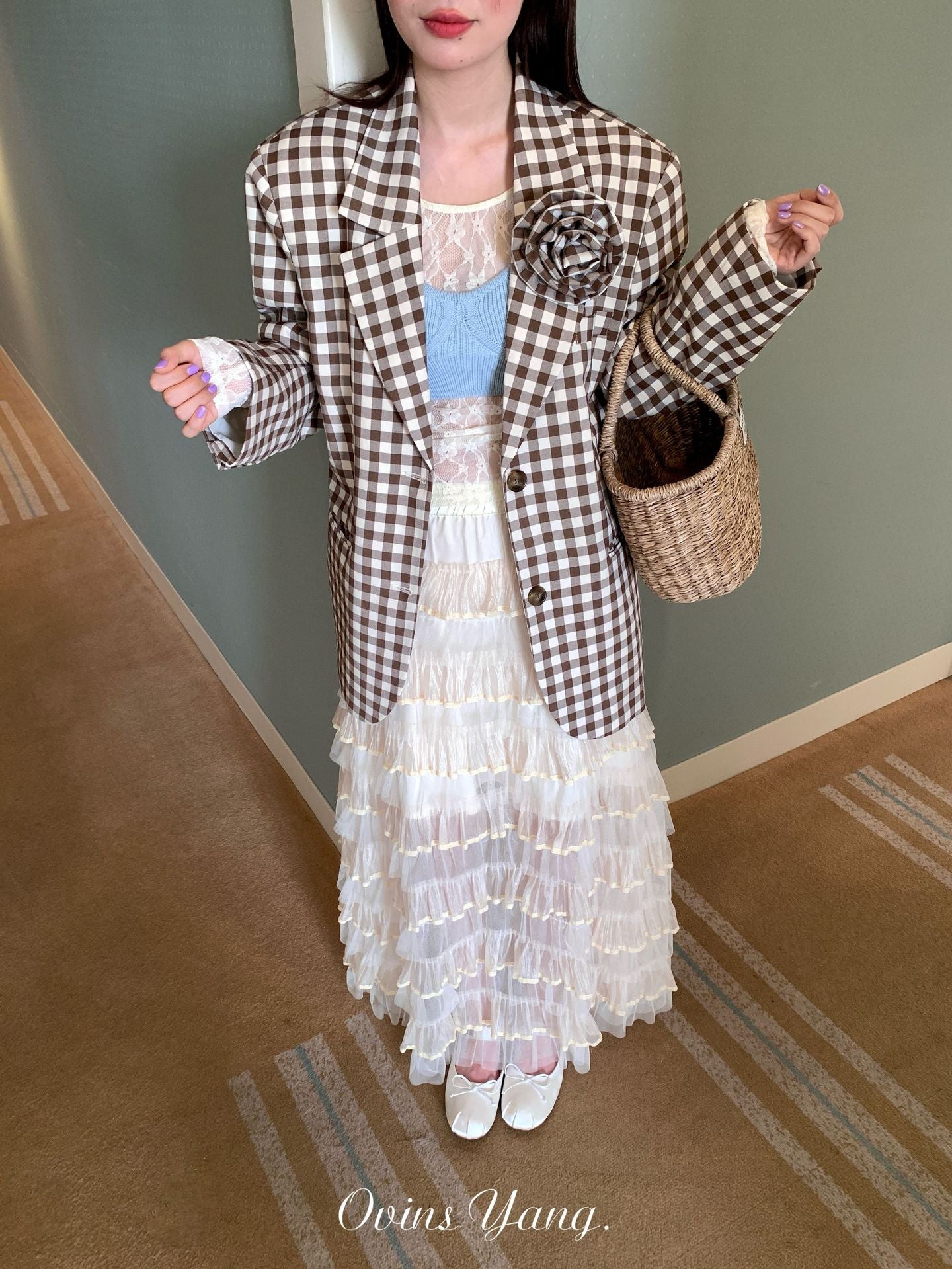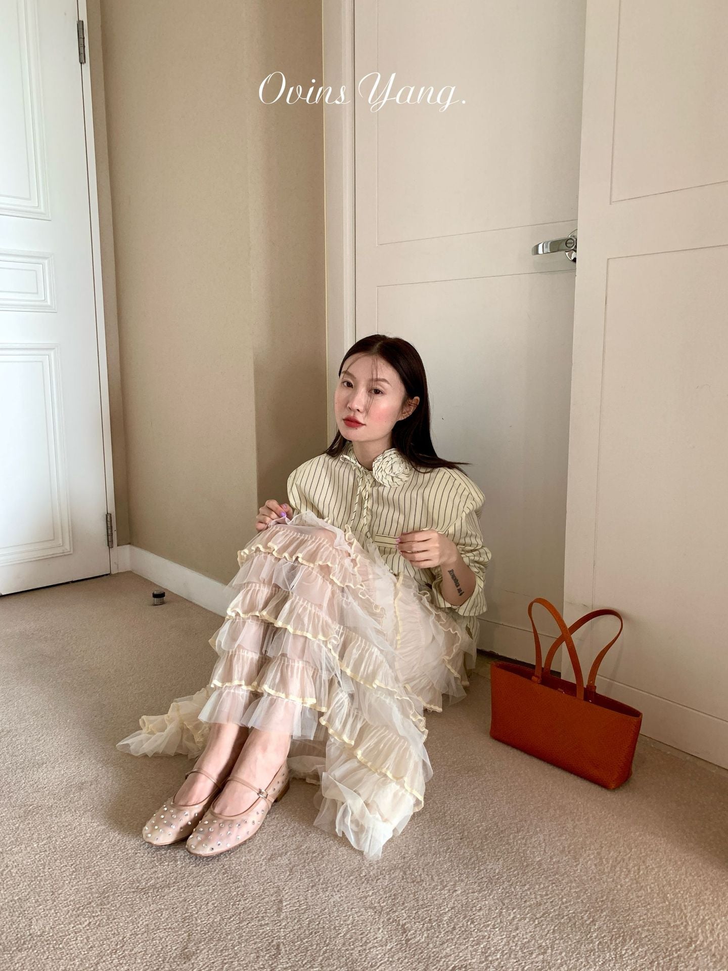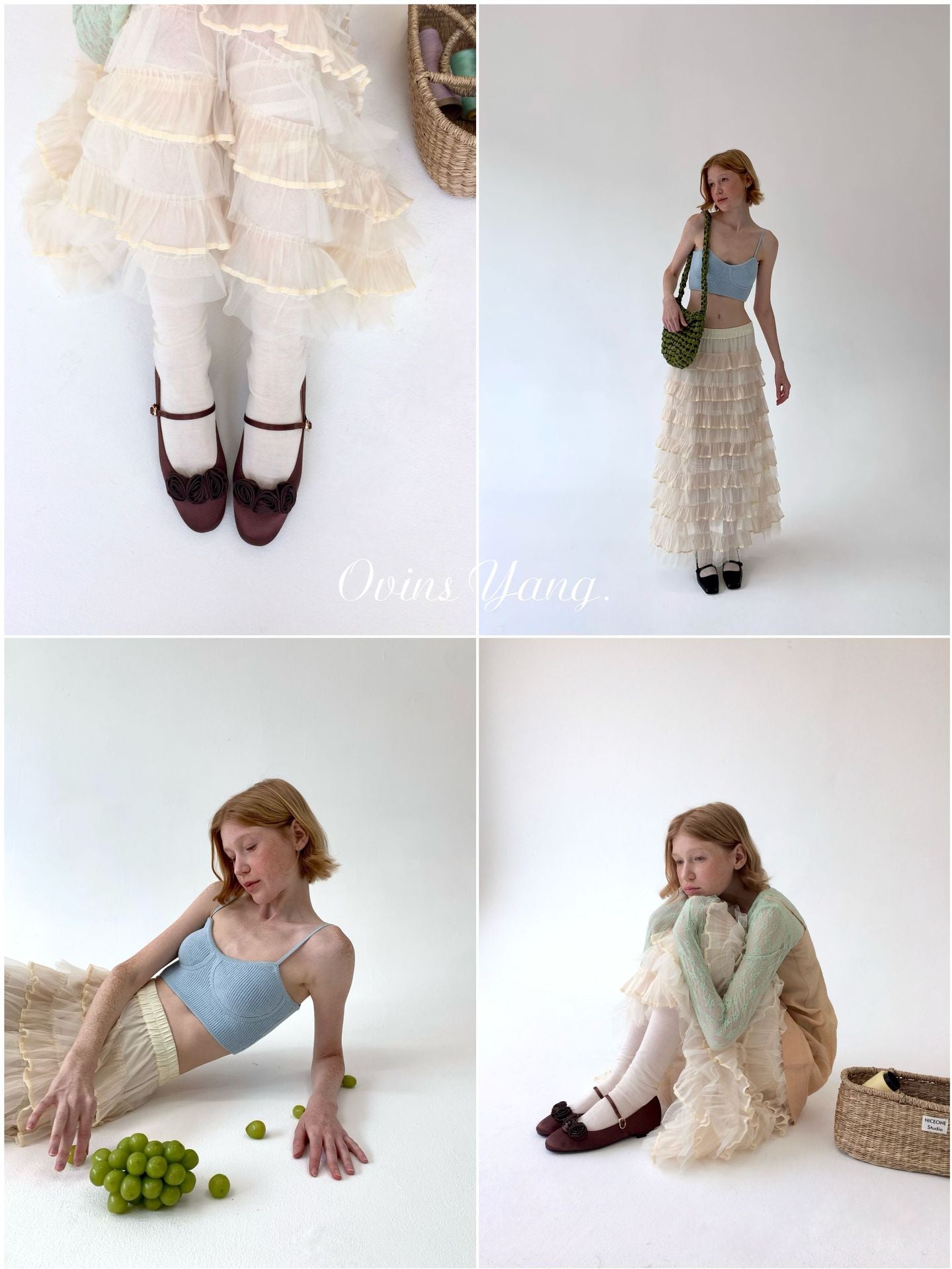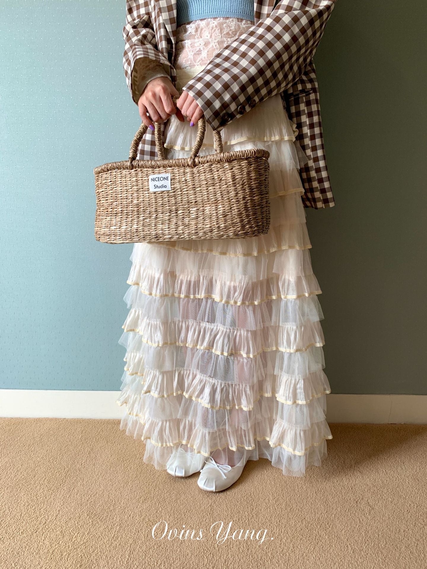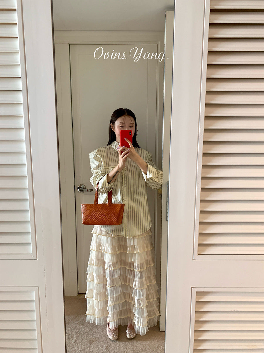 Ovinsyang. Original Design Tiered Lace Midi Skirt