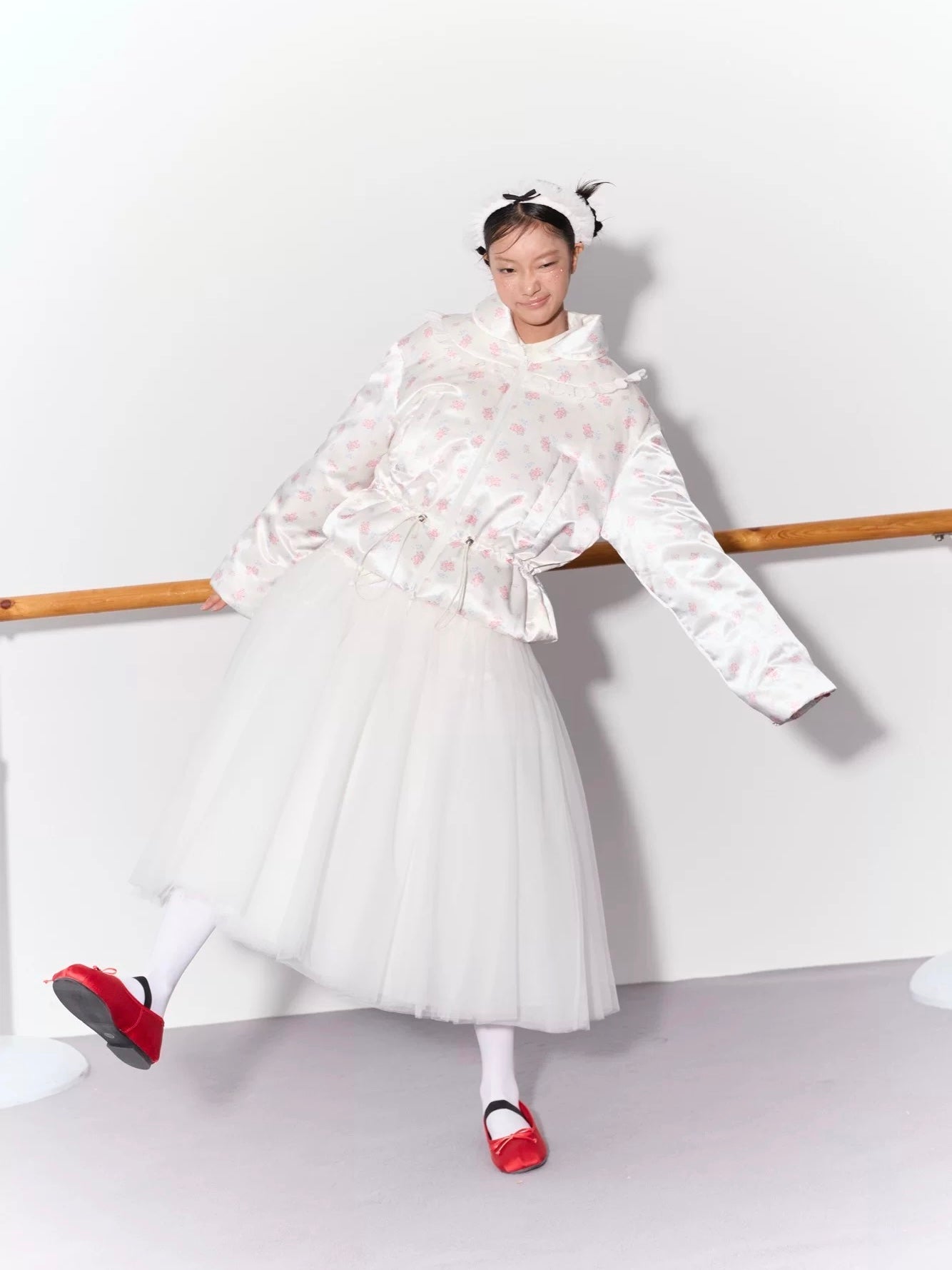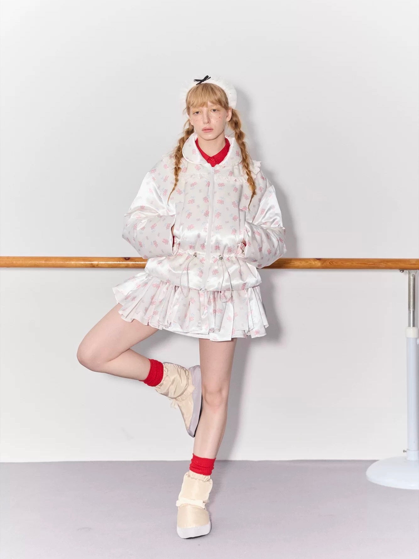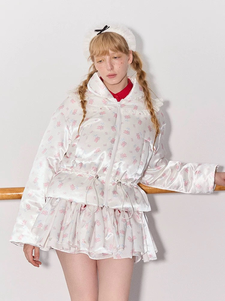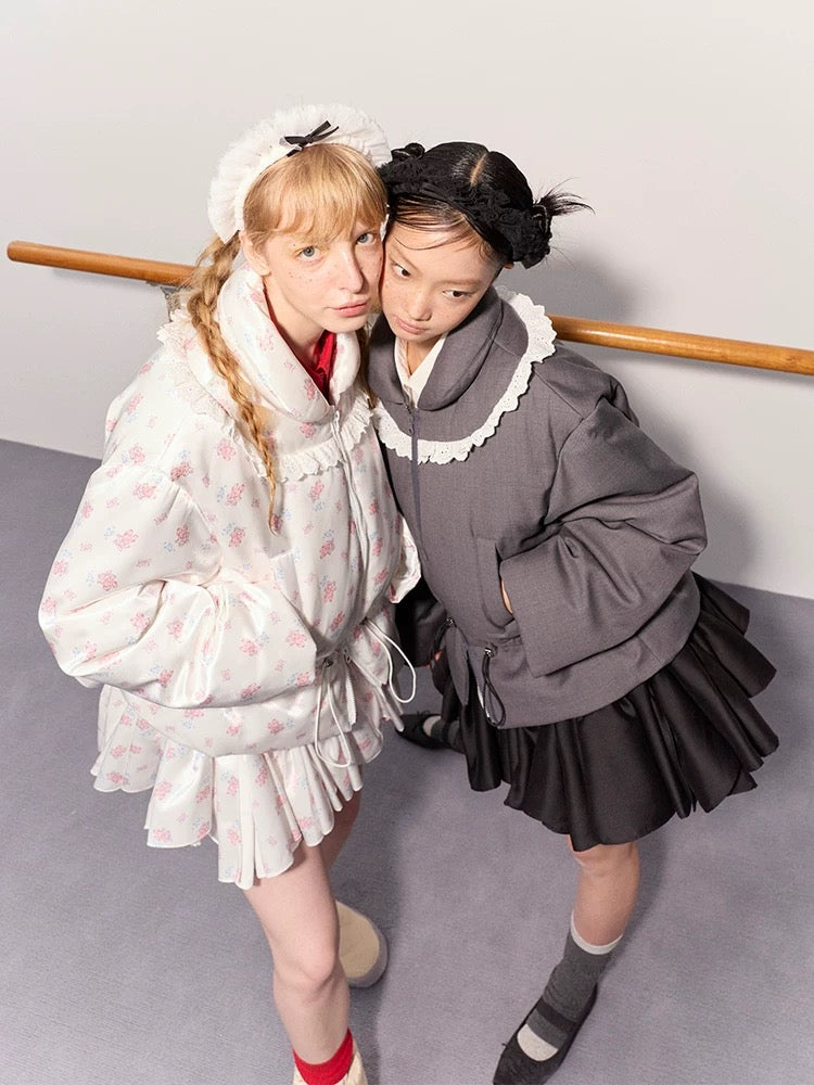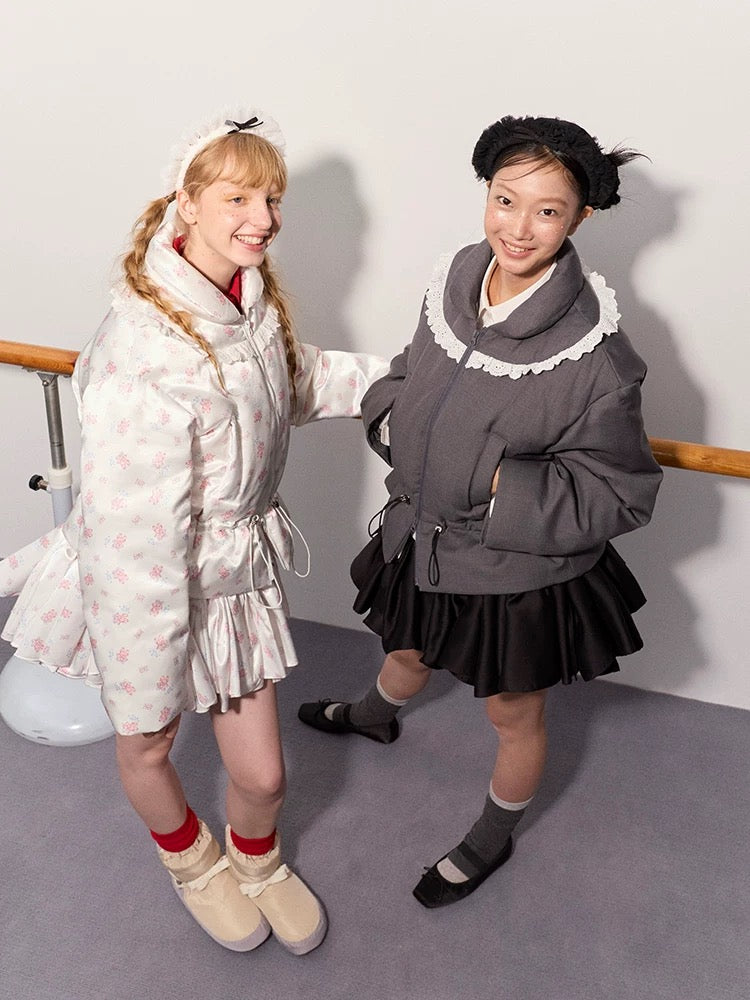 PER PEARL. Original Design Ruched Cropped Goose Down Jacket